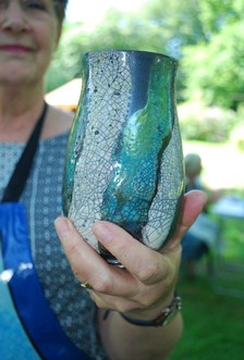 Jojo kindlylet us useher gardenfor our first public raku event. Claire and her Portable Pottery Company brought along another raku kiln and therefore we were able to accept bookings from 70 people who glazed a pot for us to fire.